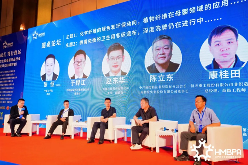 Grønt er det evige temaet for produksjonsindustrien, Zhang Heng og Chen Lidong, professorer ved Zhongyuan Institute of Technology, Zhao Donghua, direktør og visepresident for Hengyi Petrochemical Co., Ltd., Yu Hanjiang, styreleder i China Textile Institute Green Fiber Co. ., Ltd., og Kang Guitian, daglig leder for nonwovens-divisjonen til Hengtian Heavy Industries Co., Ltd., møttes ansikt til ansikt, og diskuterte varmt de grønne og miljøverntrendene til kjemiske fibre og deres nye anvendelser innen mor og barn, og analyserte de sanitære nonwovens som står overfor utfordringen med ubalanse mellom tilbud og etterspørsel. Hengyi Group har tre hovedsektorer: polyester, PTA og oljeraffinering, og implementerer den strategiske iterasjonen med å etablere en sylindrisk industrikjede, med store tekniske fordeler og skalafordeler; China Textile Green Fiber er et statseid foretak, som urokkelig tar rollen som "ballaststein", noe som gjør den bedre, større og sterkere for å oppnå utvikling av høy kvalitet; Hengtian Heavy Industry Co., Ltd. er den største produsenten av spunlaced nonwovens-utstyr i Kina, og kjører side om side med sine europeiske motparter, kjent som "Spunlace Three Musketeers", og tror at høykvalitets og rimelige nye teknologier vil vinne i den harde markedskonkurransen; Shanghai Jingfa reagerer på mer utfordrende markeder med nyere tekniske midler, bedre fabrikkforhold og avanserte industristandarder.
