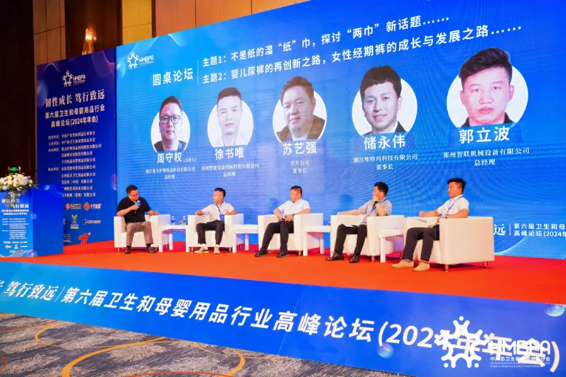 Zhou Shouquan, daglig leder i Zhejiang Youquan Nursing Products Technology Co., Ltd., Su Yiqiang, styreleder i Yusheng Company, Chu Yongwei, styreleder i Zhejiang Kakama Technology Co., Ltd., Xu Shuwei, daglig leder for Haina Intelligent Equipment International Holdings Co., Ltd., og Guo Libo, daglig leder for Zhengzhou Zhilian Machinery Equipment Co., Ltd., delte sine synspunkter og erfaringer om den banebrytende teknologien og den fremtidige trenden med "to håndklær og to bukser" innen hygiene og mødre- og barneprodukter. Su Yiqiang sa at Yusheng Company har opplevd utviklingsprosessen av Kinas babybleier fra bunnen av til fortreffelighet, fra import til lokalisering og deretter til eksport, og håper at antallet innenlandske high-end-merker vil fortsette å øke i fremtiden; Zhengzhou Zhilian Machinery har prestert godt innen våtservietter og intelligente helhetsløsninger, og har også oppnådd gode resultater, og markedsandelen i utlandet har økt de siste to årene; Chu Yongwei introduserte utviklingshistorien og den fremtidige markedstrenden til markedet for myke håndklær; Xu Shuwei sa at utstyr for menstruasjonsbukser har fortsatt å innovere og gjøre gjennombrudd de siste årene, og produktene har gjort raske fremskritt fra bukseform til materialkomfort.